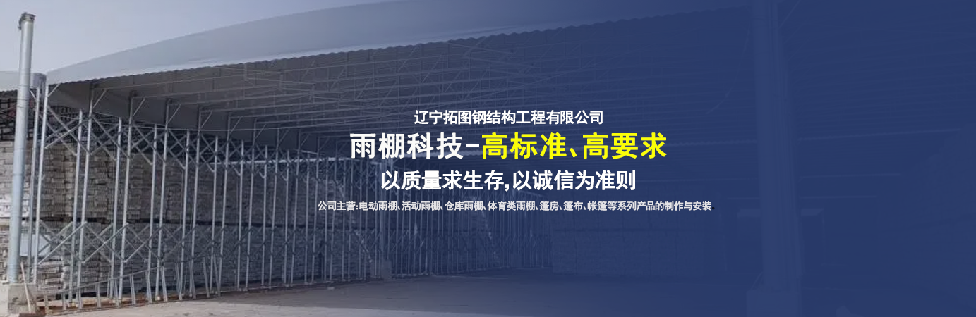 遼寧拓圖鋼結(jié)構(gòu)工程有限公司是一家專業(yè)從事推拉篷設(shè)計(jì)、制作、安裝、使用、維修的綜合性公司。公司主營(yíng):電動(dòng)雨棚、活動(dòng)雨棚、倉(cāng)庫(kù)雨棚、體育類雨棚、篷房、篷布、帳篷等系列產(chǎn)品的制作與安裝。 遼寧拓圖鋼結(jié)構(gòu)工程有限公司堅(jiān)持以市場(chǎng)為導(dǎo)向,以科技創(chuàng)新為動(dòng)力,以質(zhì)量求生存,以誠(chéng)信為準(zhǔn)則,倡導(dǎo)求實(shí)、進(jìn)取、創(chuàng)新的企業(yè)精神。“科學(xué)的管理、嚴(yán)謹(jǐn)?shù)脑O(shè)計(jì)、 的制作安裝、嚴(yán)格的質(zhì)量檢測(cè)、良好的后期服務(wù)成就企業(yè)的信譽(yù),為您提供優(yōu)質(zhì)服務(wù)。 遼寧拓圖鋼結(jié)構(gòu)工程有限公司傾力于開(kāi)發(fā)應(yīng)用三維空間結(jié)構(gòu)與新材料的結(jié)合,將廣告藝術(shù)視覺(jué)表現(xiàn)形式與張力膜材科學(xué)的結(jié)合,推出多彩推拉蓬,依靠先進(jìn)的科學(xué)技術(shù),將推拉蓬建筑表現(xiàn)形式無(wú)限延伸,立志走在建筑科學(xué)的前沿,引導(dǎo)建筑時(shí)尚潮流,我們的目標(biāo)是使推拉蓬建筑在中國(guó)發(fā)展壯大。 遼寧拓圖鋼結(jié)構(gòu)工程有限公司憑著極強(qiáng)的事業(yè)熱情和豐富的專業(yè)經(jīng)驗(yàn)以“勤勉進(jìn)取、銳意創(chuàng)新、至誠(chéng)至信”的精神使公司得到迅速健康發(fā)展,業(yè)務(wù)范圍遍及全國(guó)。科學(xué)的管理、嚴(yán)謹(jǐn)?shù)脑O(shè)計(jì)、高標(biāo)準(zhǔn)的制作安裝流程,嚴(yán)格把控產(chǎn)品質(zhì)量,熱誠(chéng)的售后服務(wù)是企業(yè)競(jìng)爭(zhēng)力的源泉。 遼寧拓圖鋼結(jié)構(gòu)工程有限公司人愿以最誠(chéng)摯的態(tài)度,歡迎廣大客戶的蒞臨與溝通!愿為市場(chǎng)提供優(yōu)...